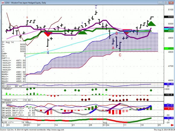 Both of these ETF's present a way to participate in the upside of Europe which is 7% off it's high and Japan which is attempting another Bull run.