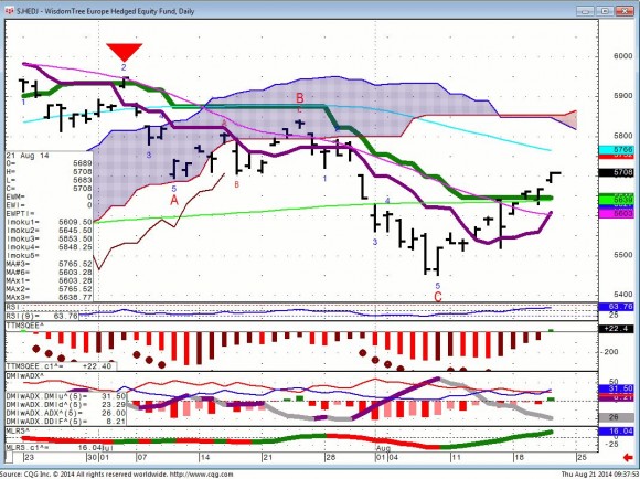 HEDJ...Long European Equities with a short Euro hedge.