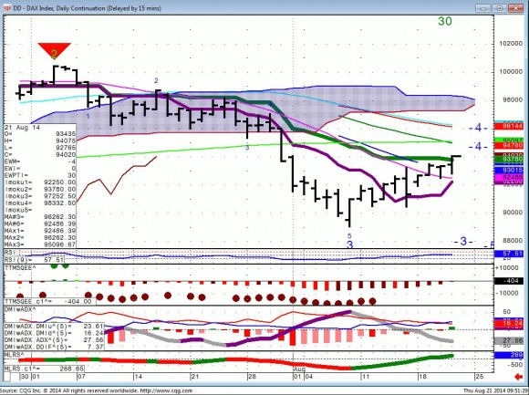 EWP & DAX have both reached resistance and their upside closing pivots.