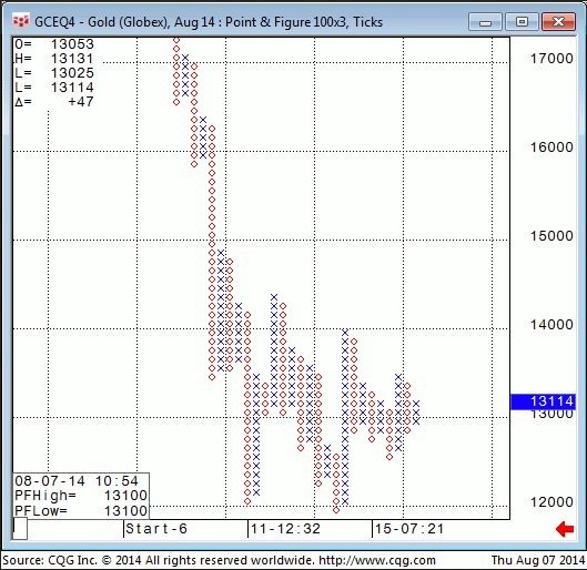 The long term Point & Figure chart shows price action above 1324 ish