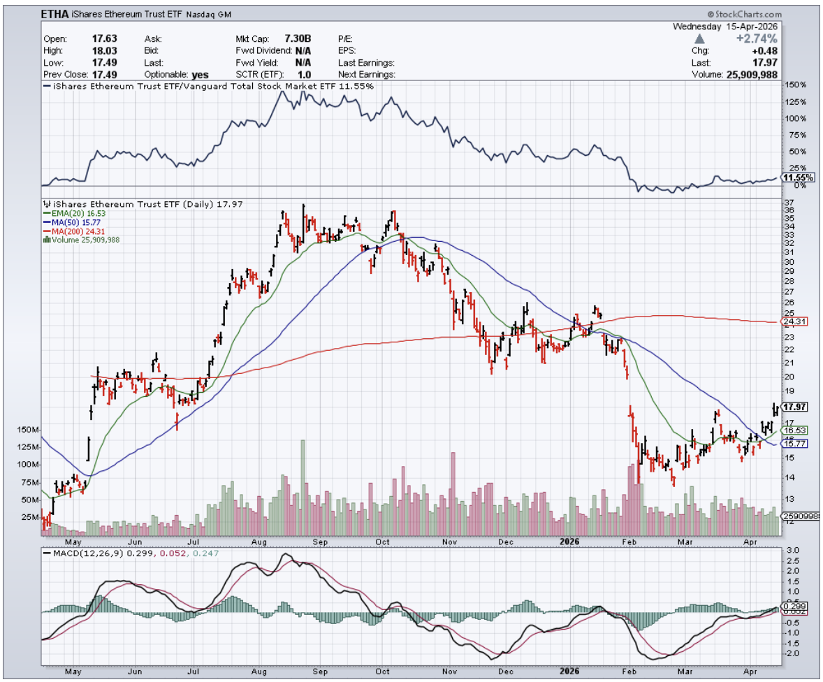 ETHA has been trading at a premium to its NAV, currently 0.33% as of mid-April, driven by institutional demand ahead of the "Glamsterdam Hard Fork," a technical upgrade to the Ethereum network slated for the first half of 2026 aimed at improving throughput and efficiency. That premium ran as high as 0.60% earlier this year before news of potential delays trimmed it back.