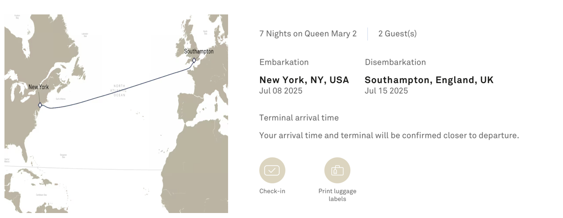 The Ship departs from the Brooklyn Cruise Terminal at 12:00 PM on Wednesday, June 17, 2026, and arrives in jolly old Southampton, England, on the morning of Wednesday, June 24. On day three, the ship will pass over the wreck of the Titanic.