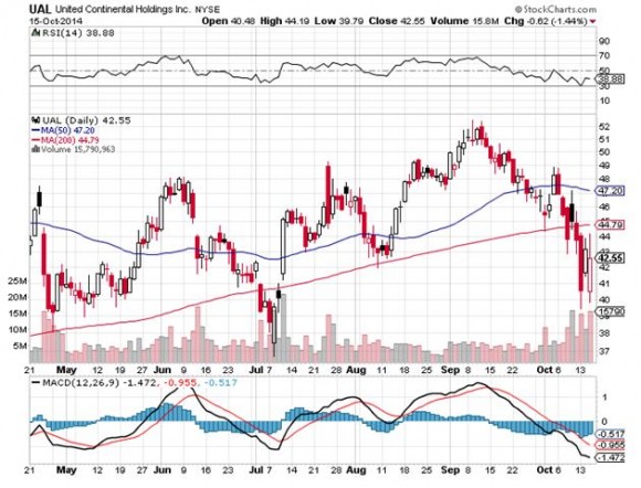 The Ebola virus is an additional sweetener (if you could use such a term for a deadly disease), because it is enabling us to buy the stock down 30% than it would be otherwise. Delta Airlines (DAL) just so happened to be the airline that brought the first Ebola carrier to the US, so it has suffered the most. As frightening as this disease is (I studied it in my Army bacteriological warfare days), I doubt we will see more than a dozen cases in the US.