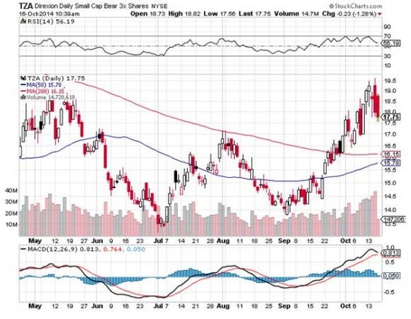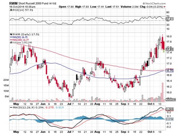 If you don?t trade options, then take profits and sell the Short Russell 2000 Fund ETF (RWM) as a 1X play, or the Direxion Daily Small Cap Bear 3X ETF (TZA) for a 3X trade.